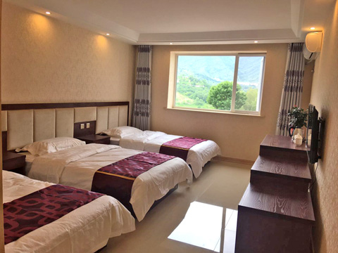 汕林轩民宿是独栋别墅,共有23间房间,共可以容纳60人同时入住,房型有两人间和三人间等不同房型,房间设施齐全,空调、电视、无线网、24小时热水、独立的洗漱间等设施一应俱全,房间宽敞明亮,视野开阔,在客房对面的小山坡上,
